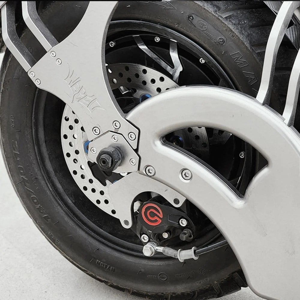 • Dual BLDC Hub Motors: Deliver a combined power output of 8KW, ensuring swift acceleration and a top speed of approximately 160km/h (100MPH).